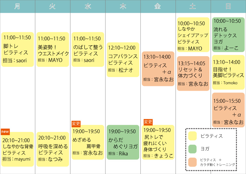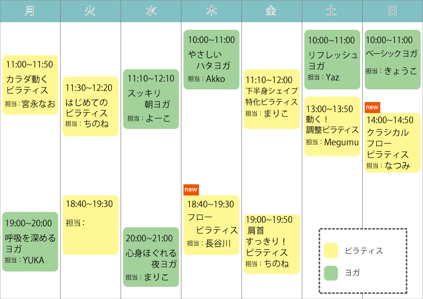 「マシンピラティス」 「マットピラティス」 「ヨガ」 「マタニティヨガパーソナル」 「マタニティピラティスパーソナル」