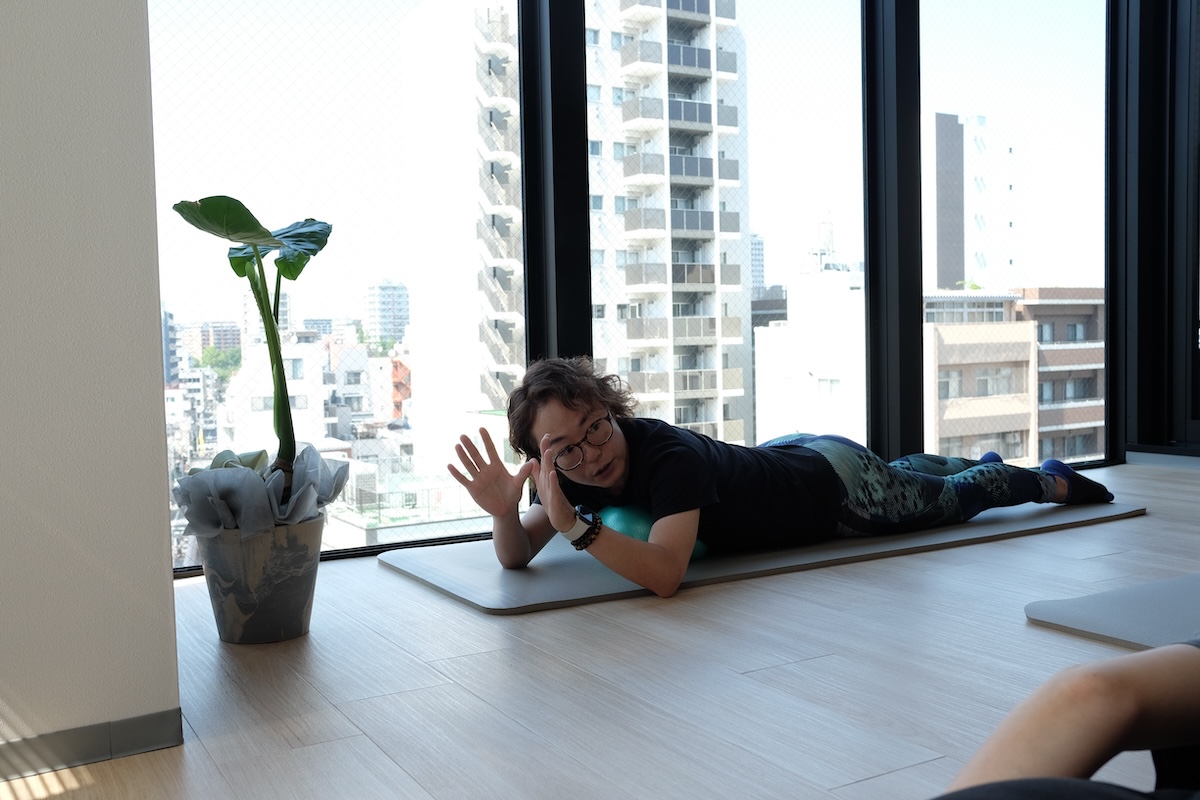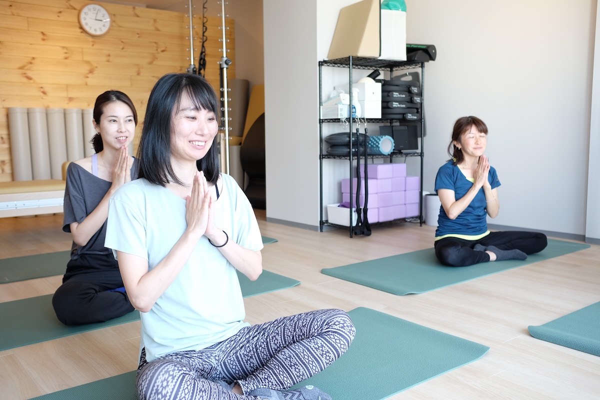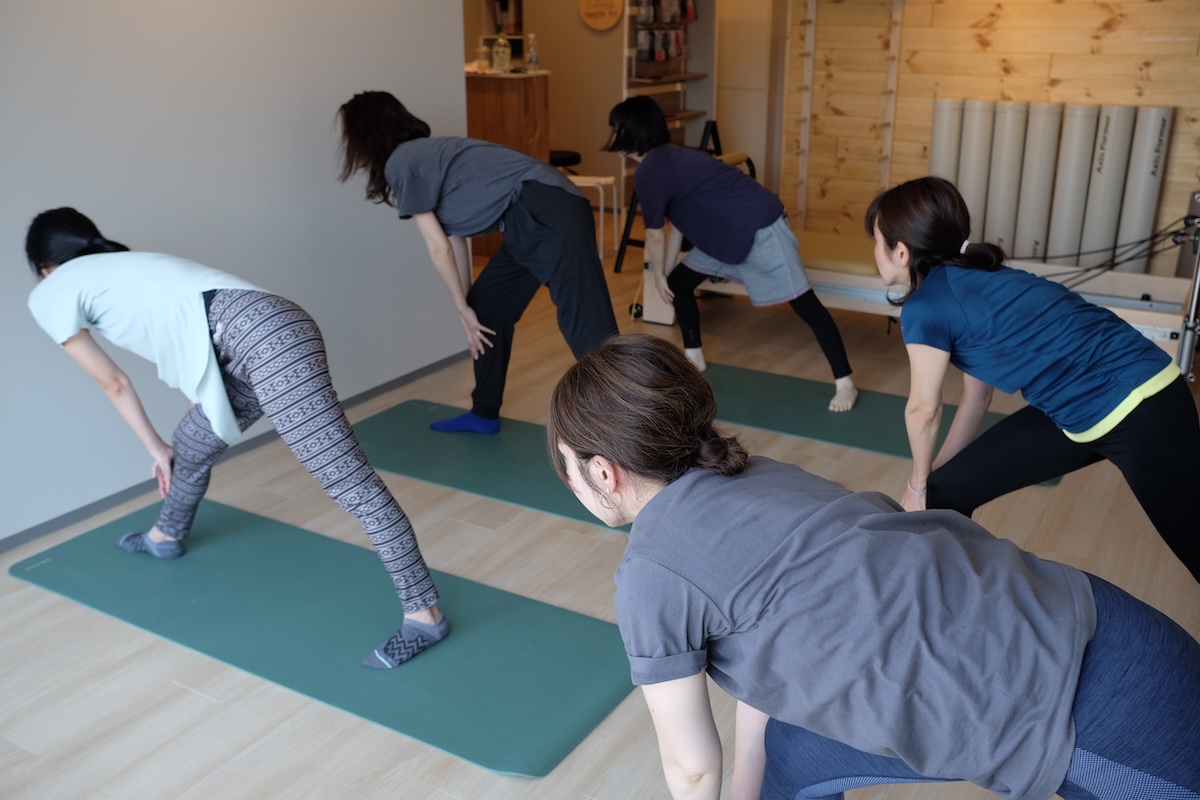 グループレッスンで行うのは、マットピラティス。家でも再現しやすいので、運動習慣をつけるのにぴったりです。